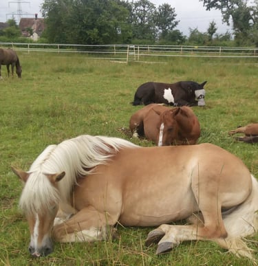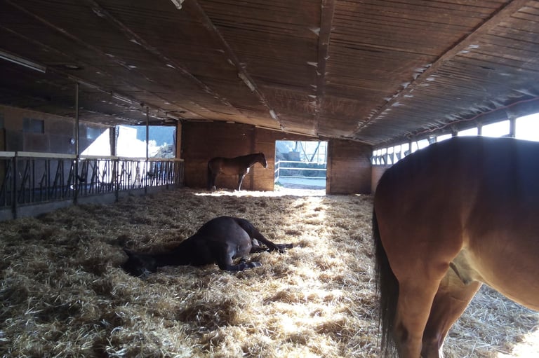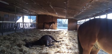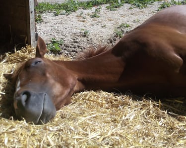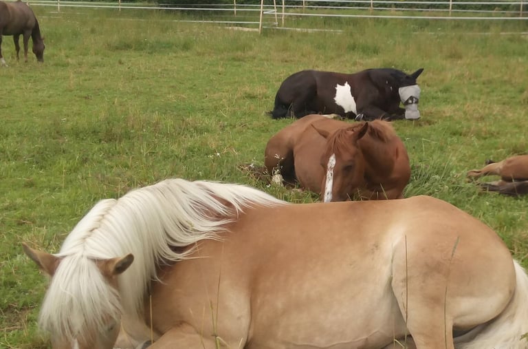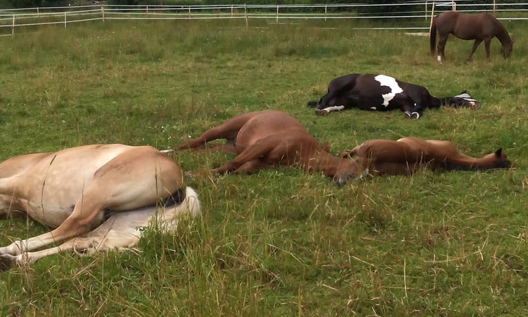 Pferde erreichen den wichtige REM-Schlaf nur im liegen! Im Stehen ist nur traumloser Schlaf möglich.