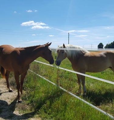 Ein Pferd sollte mit mind. einem Artgenossen zusammen leben dürfen. Ihr sehr komplexes Sozialverhalten, ist nur ohne Trennwand oder Koppelzaun wirklich möglich.