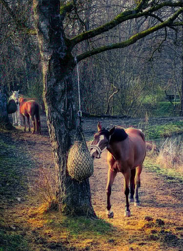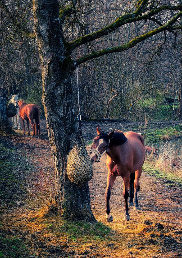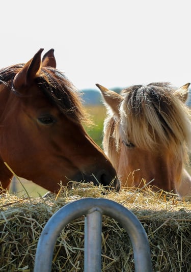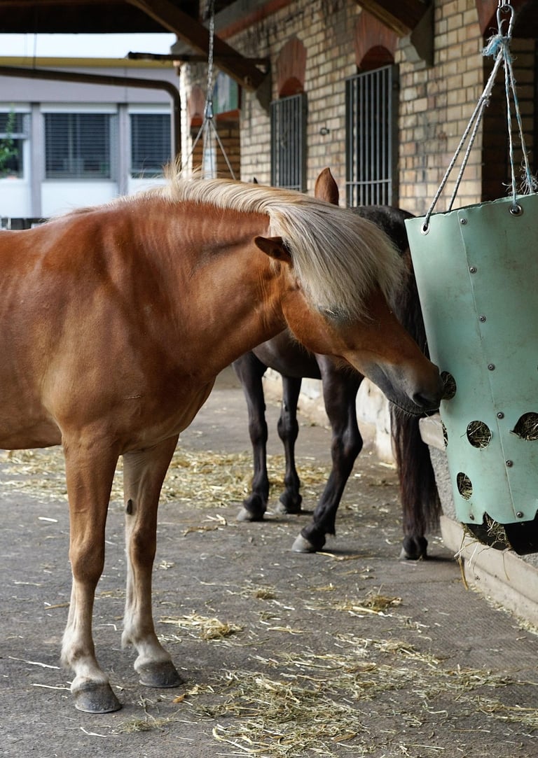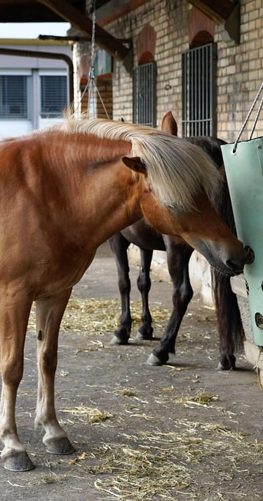24h Raufutterverfügung ist für die körperliche und mentale Gesundheit am optimalsten - Über individuell zum jeweiligen Pferd passende Slow Feeder.